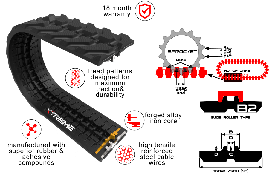 | Canada | We offer FREE ground shipping on Rubber Track products to most areas across Canada when shipped to a commercial address or a local trucking terminal held for pickup. If you want your package delivered to a residential or rural address, there is an EXTRA FEE. Use the shipping calculator to determine if your area or product qualifies for FREE Shipping and if applicable what the extra residential or rural delivery fee will cost. EXEMPTED AREAS FOR FREE SHIPPING ARE – Labrador, NWT, Nunavut, Yukon. All orders shipped to these areas are quoted with the best available logistics carriers and additional charges will be applied. If you fall in one of these areas, please call or email us directly and we will send you a quote. |